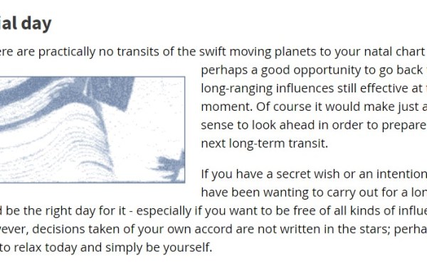 I’m going to have to watch my step today. Transiting Mercury is opposing my natal Chiron and I’m feeling as if I need to voice my disapproval to those whose […]